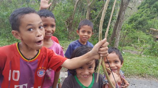 Weiter ging es nach Rangat, einem kleinen Dörfchen mitten im Nirgendwo, abseits von der großen Straße, die nach Ruteng führte. Wir hielten bei einer Familie, die Hans kannte und die uns direkt zu sich ins Haus einlud, um dort Kaffee zu trinken. Ein Großteil der Familie war zugegen – unterschiedliche Generationen vereint unter einem Dach. Das Familienoberhaupt jenseits der 70, aber stolz präsentierte er uns seine Jacke und Kopfbedeckung, stolz war er auf das Bild, das ich von ihm gemacht hatte. Herzlich waren sie. Alle. Ausnahmslos. Und dennoch: von Lebensqualität und Luxus konnte hier keineswegs die Rede sein. Ein großes Doppelbett, auf welchem anstelle einer Matratze nur Matten lagen, stand mitten im Raum, in welchem sich gleichzeitig die Küche und der Essbereich befanden, die Kids spielten auf dem Boden mit nichts außer sich selbst, keiner hatte irgendetwas zu tun, aber keiner von ihnen schien irgendwie unglücklich. Das Aufeinandertreffen zweier so unterschiedlicher Kulturen nahm ganz ordentlich Geschwindigkeit bei mir heraus. Auf gespenstische Art und Weise fand ich es unglaublich entspannend, herzerwärmend und herzlich. Ihre Sprache konnte ich nicht verstehen, aber eine gemeinsame Sprache sprachen wir dennoch: die des gemeinsamen Lachens, des uns gegenseitigen Anlachens.